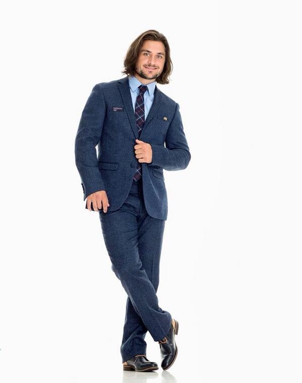 - The light blue suit with a light purple shirt and dark purple tie is posh and sexy.